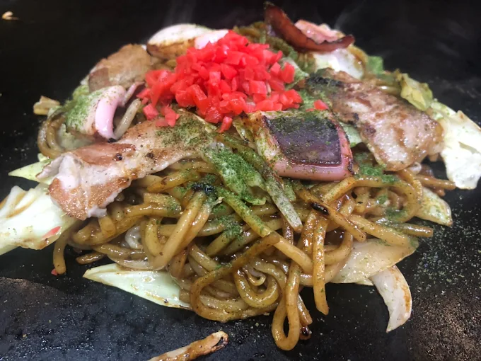 お店の暖簾をくぐると、なんとも懐かしい昭和レトロな空間が広がり、鉄板から立ち上るソースの香りが五感を刺激します。